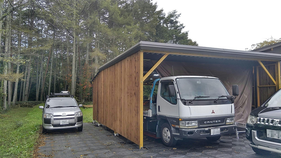 車内のルームクリーニング(ルークリ)に特化した工房(ガレージ)を、カクイチのカーポートをベースに建設いたしました♪ よーやく完成です♪ MAEDA工房( ̄▽ ̄●)ウレシイ♪